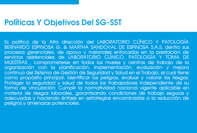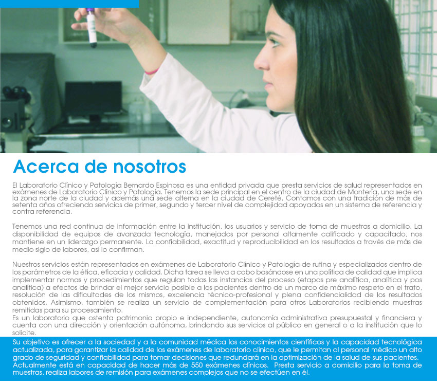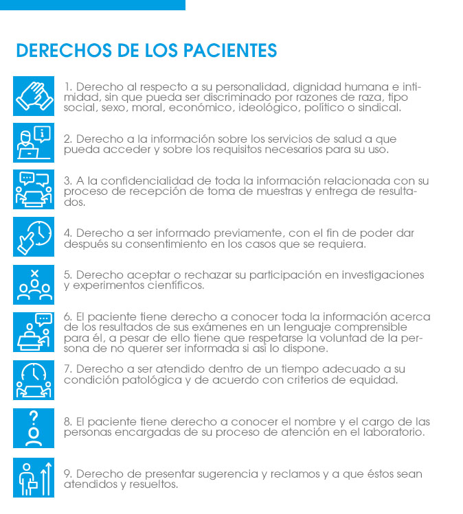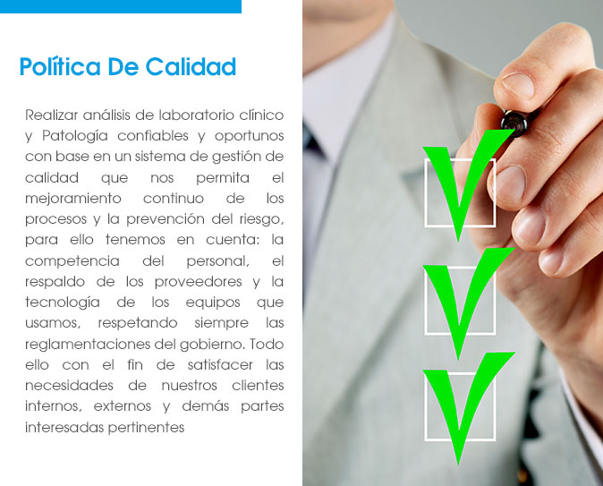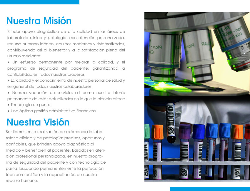 Acerca De NosotrosNuestra Misión y VisiónNuestra HistoriaDerechos y Deberes del PacientePolíticas Y ObjetivosGestión De CalidadControl De CalidadMuestras Codificada